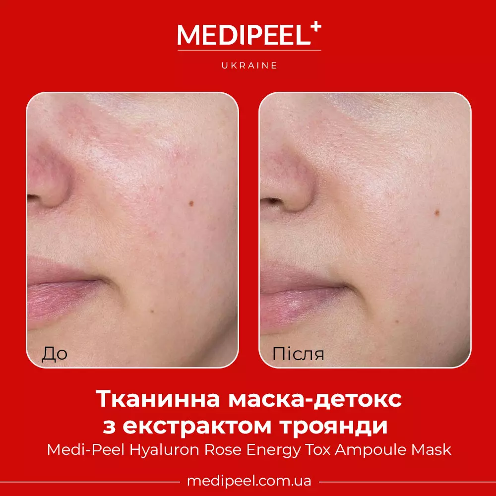 Опис MEDIPEEL Hyaluron Rose Energy Tox Ampoule Mask