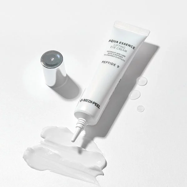 Medi-Peel Peptide 9 Aqua Essence Lifting Eye Cream - вишуканий і передовий крем для зони навколо очей, створений з метою забезпечити омолоджувальний і живильний ефект для ніжної шкіри. Цей продукт збагачений сильним коктейлем пептидів, що сприяють зниженню видимості дрібних ліній, зморшок та інших проявів старіння.