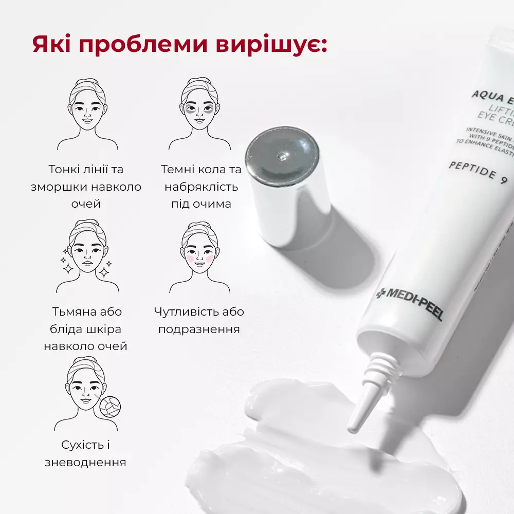 Поширені запитання про MEDIPEEL Peptide 9 Aqua Essence Lifting Eye Cream