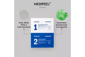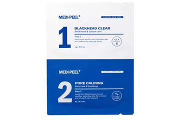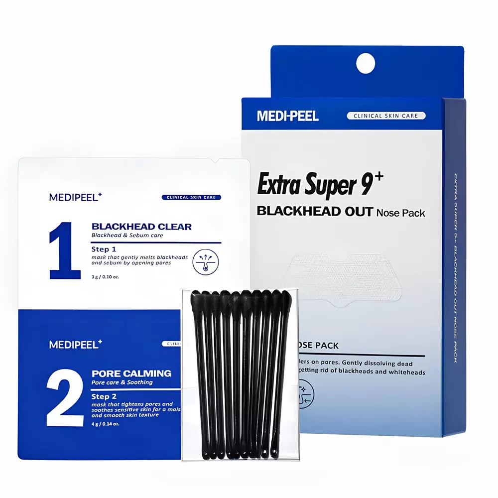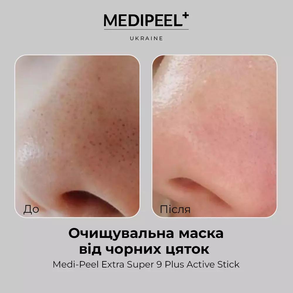 Двоетапна маска Medi-Peel Extra Super 9 Plus Blackhead Out Nose Pack для видалення чорних цяток професійно очищає пори, видаляє комедони і сальні нитки, забезпечуючи гладкість і чистоту шкіри.