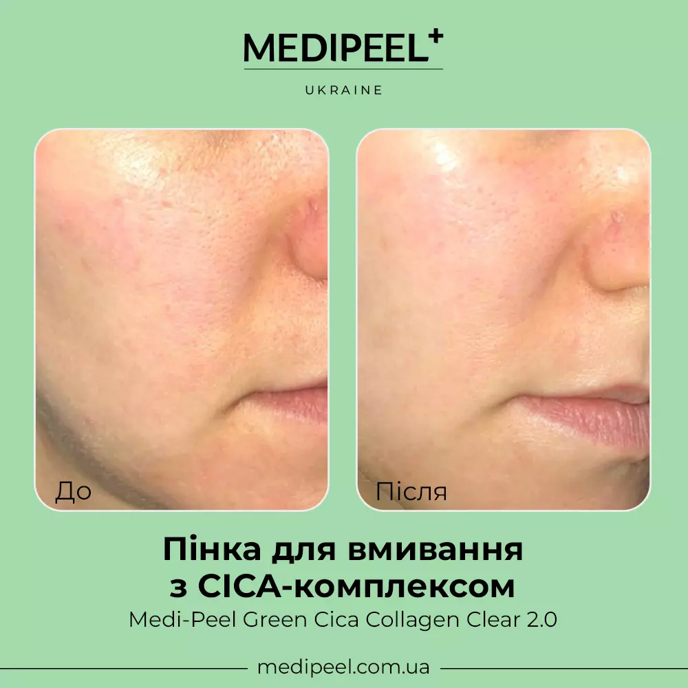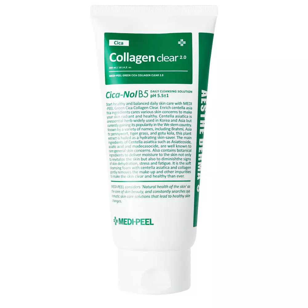 Колагенова пінка MEDIPEEL Green Cica Collagen Clear 2.0, 15 мл з потужним CICA-комплексом ідеально підходить для глибокого очищення шкіри без відчуття стягнутості та дискомфорту. Цей продукт не тільки ефективно видаляє забруднення і надлишок шкірного жиру, але і допомагає зняти почервоніння, заспокоїти шкіру і вирівняти її тон, даруючи відчуття свіжості і комфорту.
