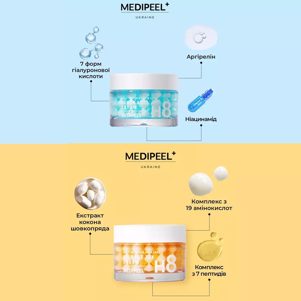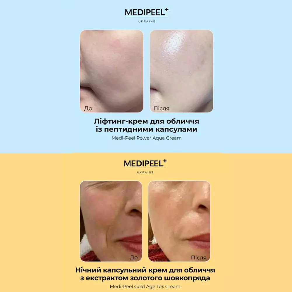 Представляємо комплексний ліфтинг-набір капсульних кремів на день-ніч з пептидами MEDIPEEL Day-Night Capsule Cream - інноваційний дует для вашого догляду, що забезпечує бездоганне зволоження і ліфтинг-ефект цілодобово.