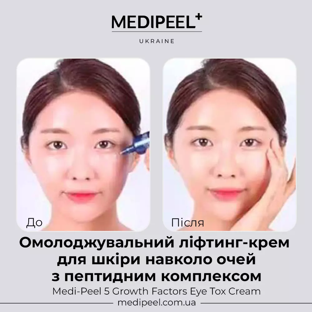Ознайомитися з нашим оглядом про омолоджувальний ліфтинг-крем для повік з пептидним комплексом MEDIPEEL 5 Growth Factors Eye Tox Cream можна перейшовши за посиланням