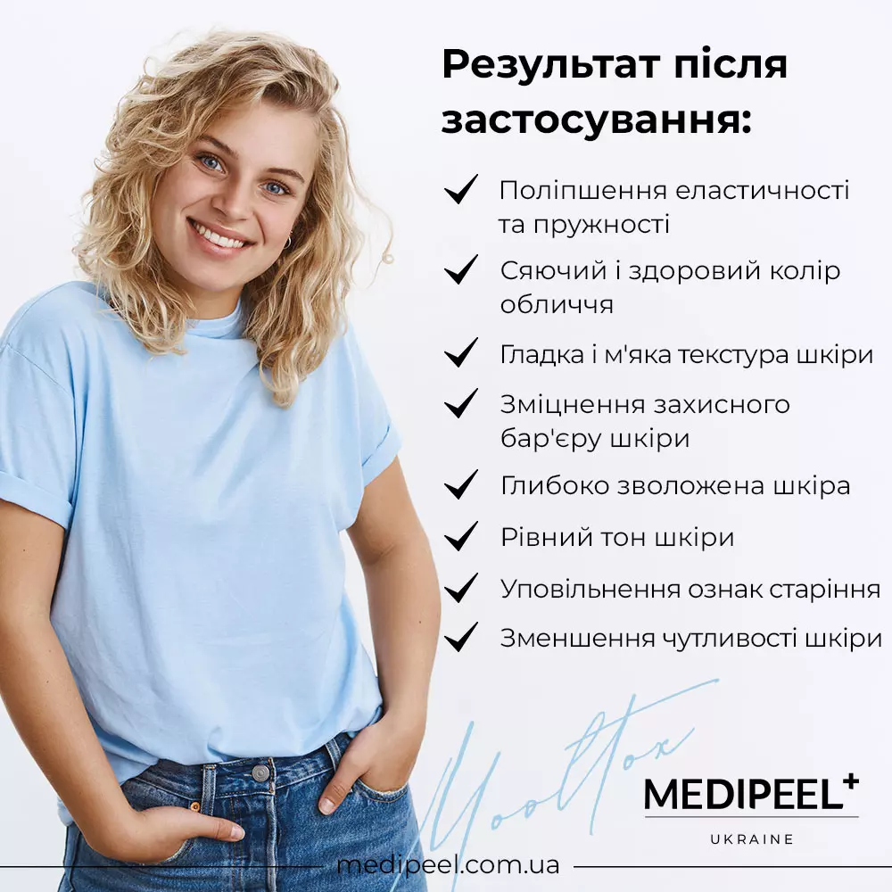 ☝️ Продукція Medi Peel проходить низку лабораторних досліджень, щоб підтвердити, що вона є безпечною та ефективною для дівчат. Але від індивідуального несприйняття певних інгредієнтів у формулі продуктів ніхто не застрахований. Щоб убезпечити себе та зробити досвід використання косметики позитивним, і головне – не нашкодити своєму здоров’ю, завжди проводьте такий тест перед додаванням будь-якого косметичного засобу у щоденні ритуали краси.