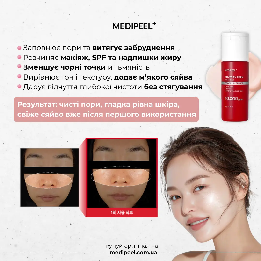 MEDIPEEL PHYTO EX PDRN Micro Shot Powder Cleanser — це нове покоління засобів для очищення, розроблене для глибокого детокс-очищення без пошкодження захисного бар'єру шкіри.