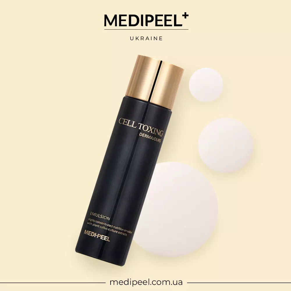 Омолоджувальна емульсія на основі стовбурових клітин під назвою "Medi-Peel Cell Toxing Dermajours Emulsion" є продуктом з інтенсивною відновлювальною та антивіковою дією. Цей препарат пропонує комплексне рішення для догляду за шкірою, сприяючи вирівнюванню її текстури, профілактиці зморшок, зміцненню структури епідермісу і зменшенню пігментації.