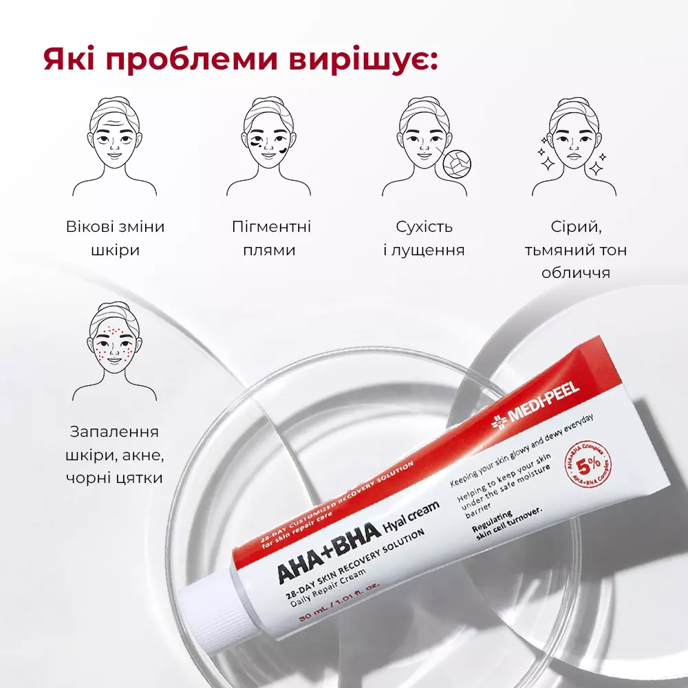 Опис MEDIPEEL AHA BHA 28 Days Hyal Cream