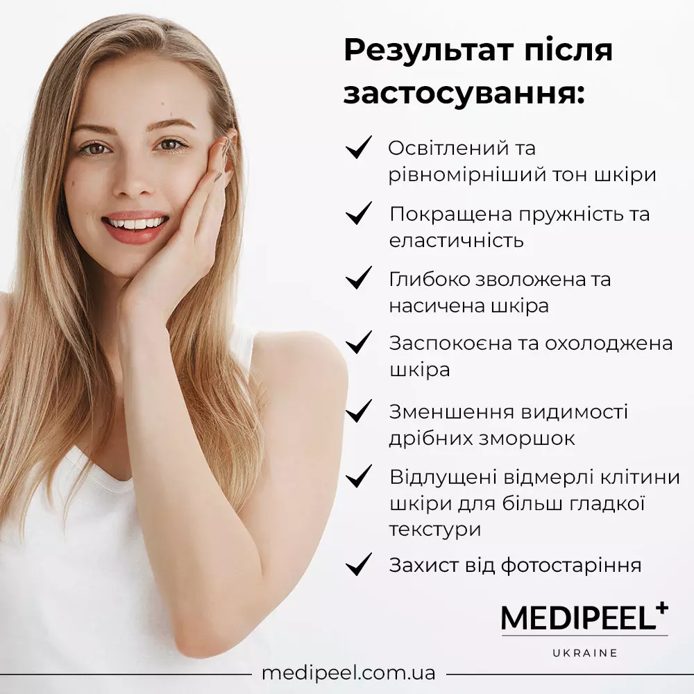 ☝️ Продукція Medi Peel проходить низку лабораторних досліджень, щоб підтвердити, що вона є безпечною та ефективною для дівчат. Але від індивідуального несприйняття певних інгредієнтів у формулі продуктів ніхто не застрахований. Щоб убезпечити себе та зробити досвід використання косметики позитивним, і головне – не нашкодити своєму здоров’ю, завжди проводьте такий тест перед додаванням будь-якого косметичного засобу у щоденні ритуали краси.