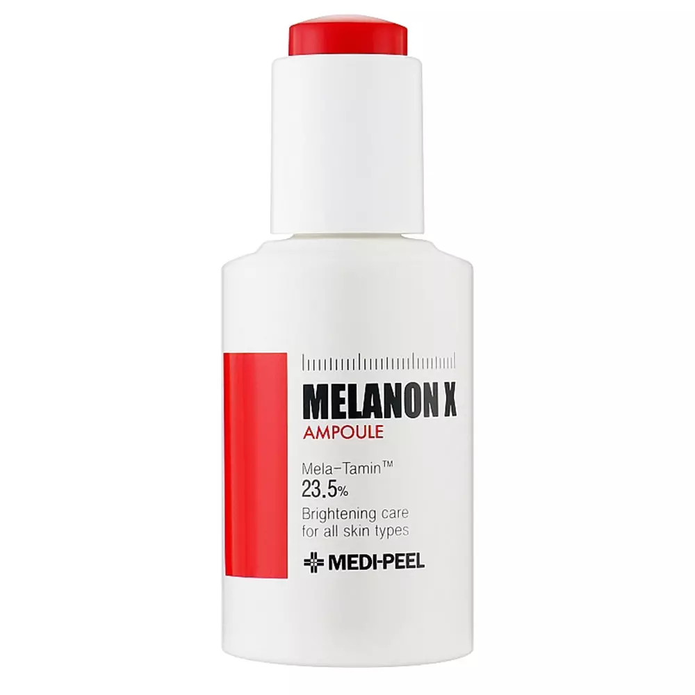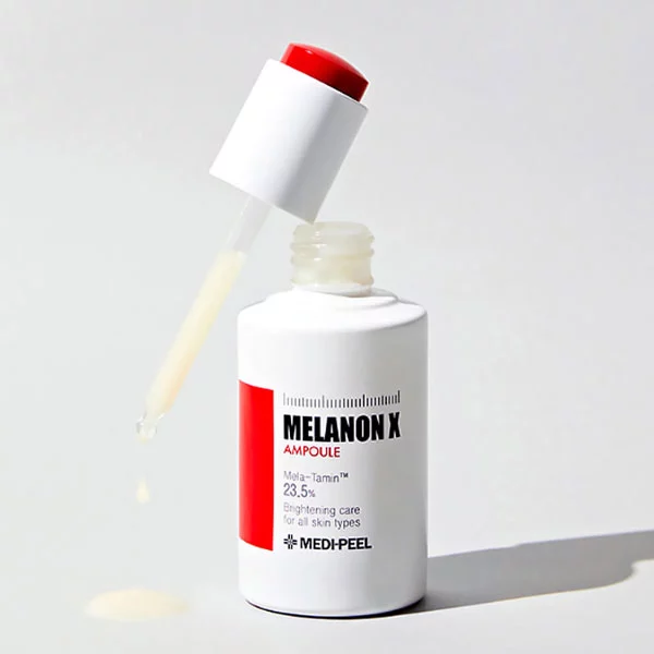 Ампула Medi-Peel Melanon X містить суміш інгредієнтів, що освітлюють шкіру та регулюють пігментацію, таких як ніацинамід, арбутин та екстракт солодки, які працюють разом для вирішення цих поширених проблем шкіри. Ампула має на меті покращити загальний вигляд і сяйво шкіри, а також сприяти більш рівному і збалансованому кольору обличчя. Вона підходить для всіх типів шкіри, але особливо корисна для тих, хто страждає від гіперпігментації або нерівномірного тону шкіри.