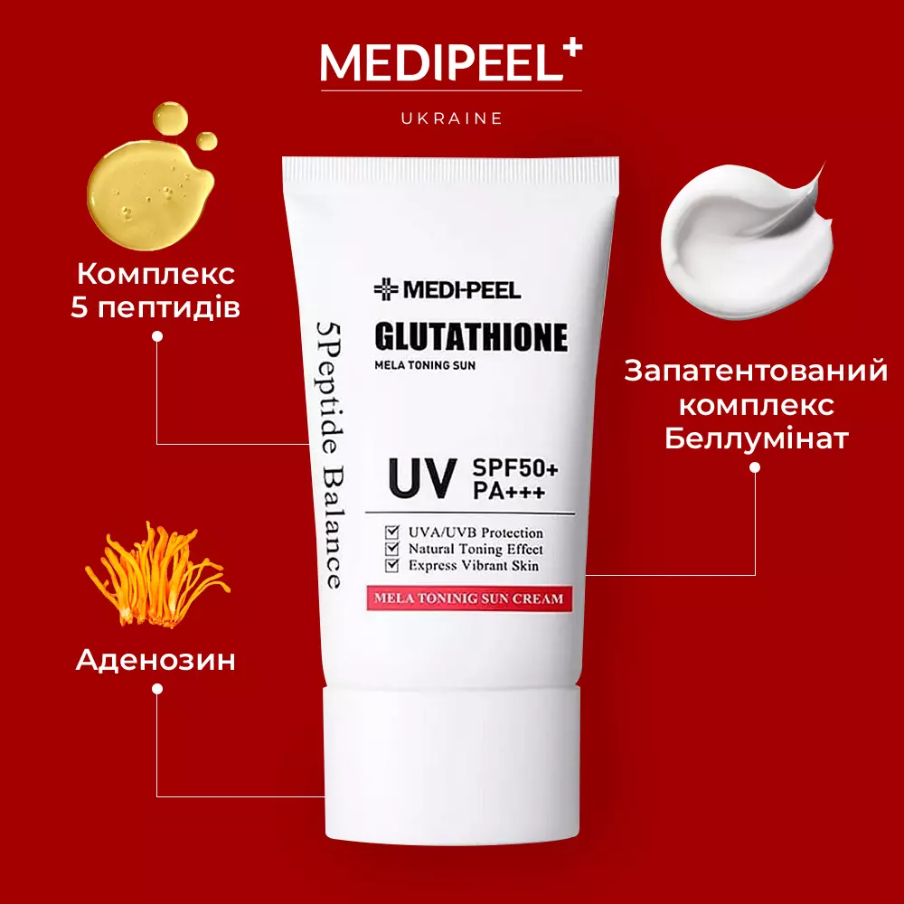 Опис MEDIPEEL Bio-Intense Glutathione Mela Toning Sun Cream SPF 50+ PA++++