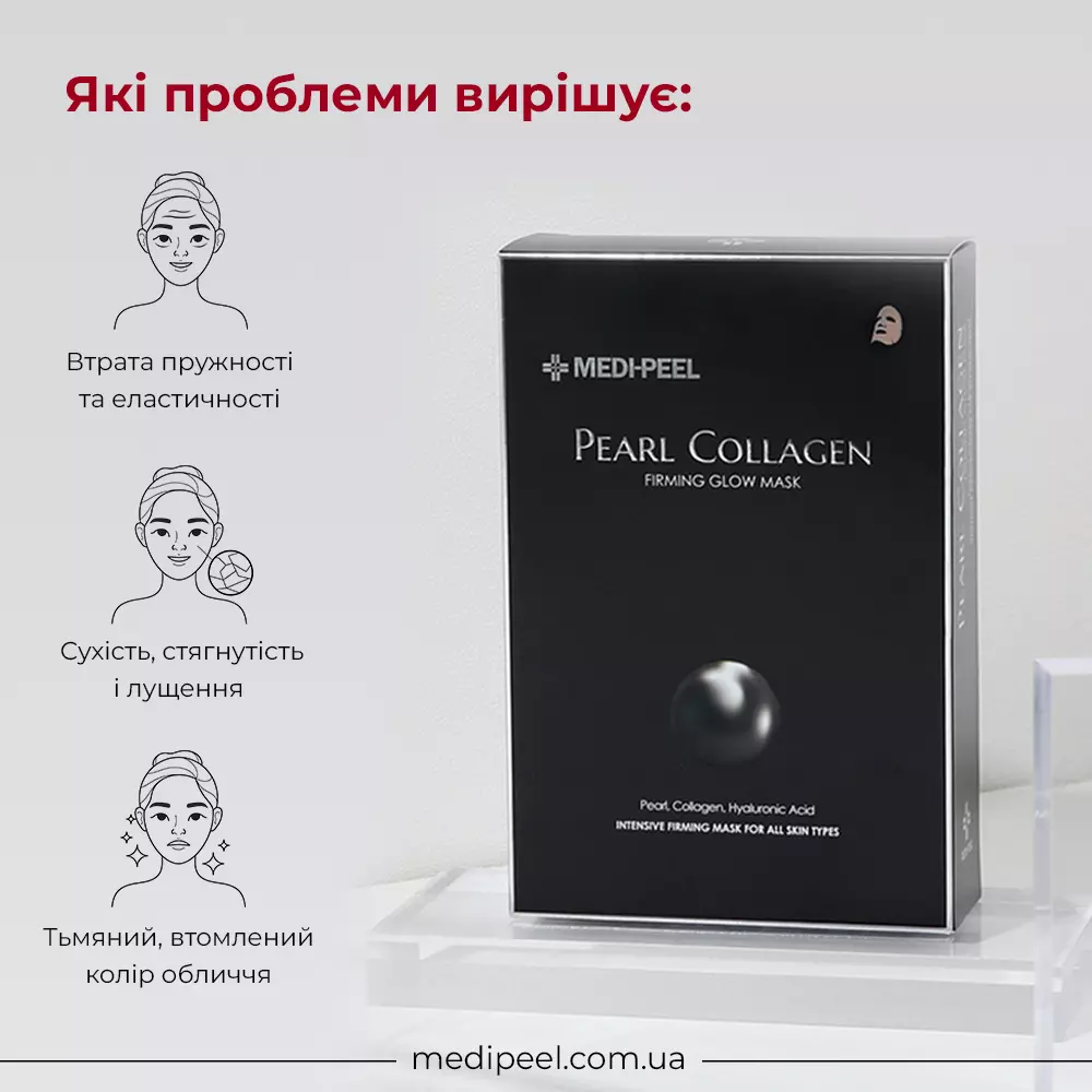 MEDIPEEL Pearl Collagen Firming Glow Mask – це експрес-догляд, який миттєво перетворює шкіру, надаючи їй ефекту «відпочилого обличчя» і розкішного сяйва!