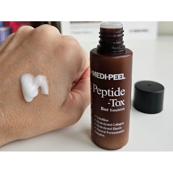 Емульсія MEDIPEEL Peptide-Tox Bor Emulsion - це ваш ключ до молодості та сяйва шкіри! Компактний формат і високоактивна формула роблять її ідеальним вибором для комплексного антивікового догляду. Емульсія інтенсивно зволожує, зміцнює шкіру, допомагає справлятися з першими ознаками старіння, повертаючи шкірі природну пружність і свіжість.