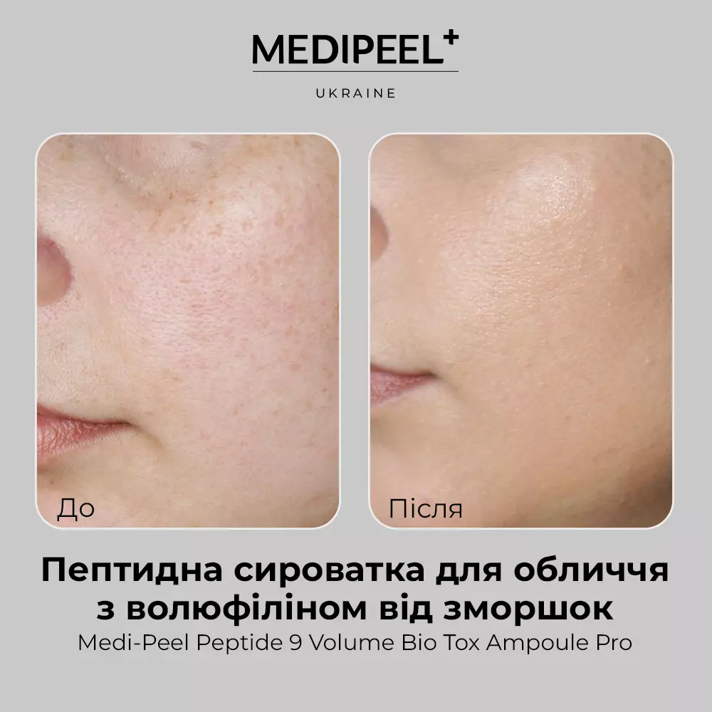 - Дякуємо за ваш відгук! Дуже раді, що MEDIPEEL Peptide 9 Volume Bio Tox Ampoule Pro допомогла вам досягти такого помітного результату — пружна, підтягнута шкіра без походів до косметолога — це можливо з MEDIPEEL