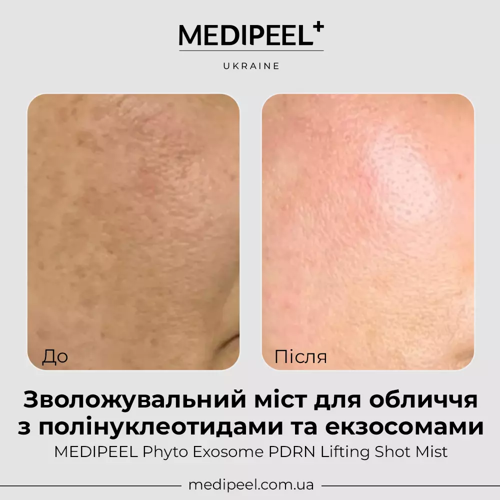 MEDIPEEL Phyto Exosome PDRN Lifting Shot Mist ідеальний для швидкого освіження та зволоження шкіри протягом дня, чудово підходить для використання в офісі або в дорозі, відновлюючи втомлену шкіру. і надаючи їй здорового сяйва.
