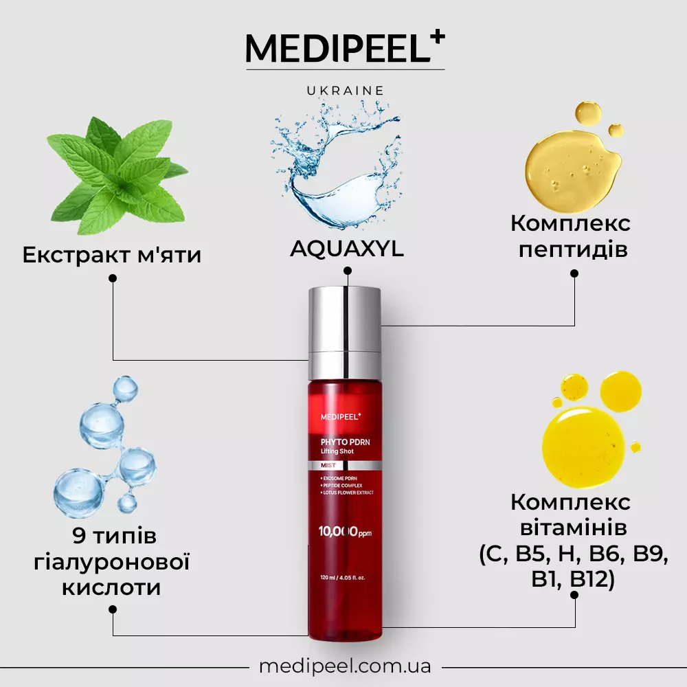 Стисло про MEDIPEEL Phyto Exosome PDRN Lifting Shot Mist