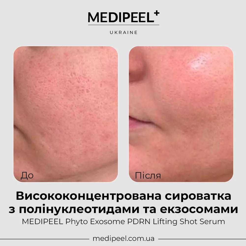 - Дякуємо за теплий відгук! Ми раді, що ліфтинг-сиpоватка MEDIPEEL з PDRN та екзосомами подарувала шкірі ідеальне зволоження та підтягнутість.