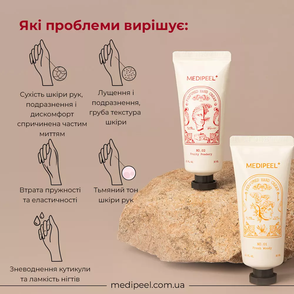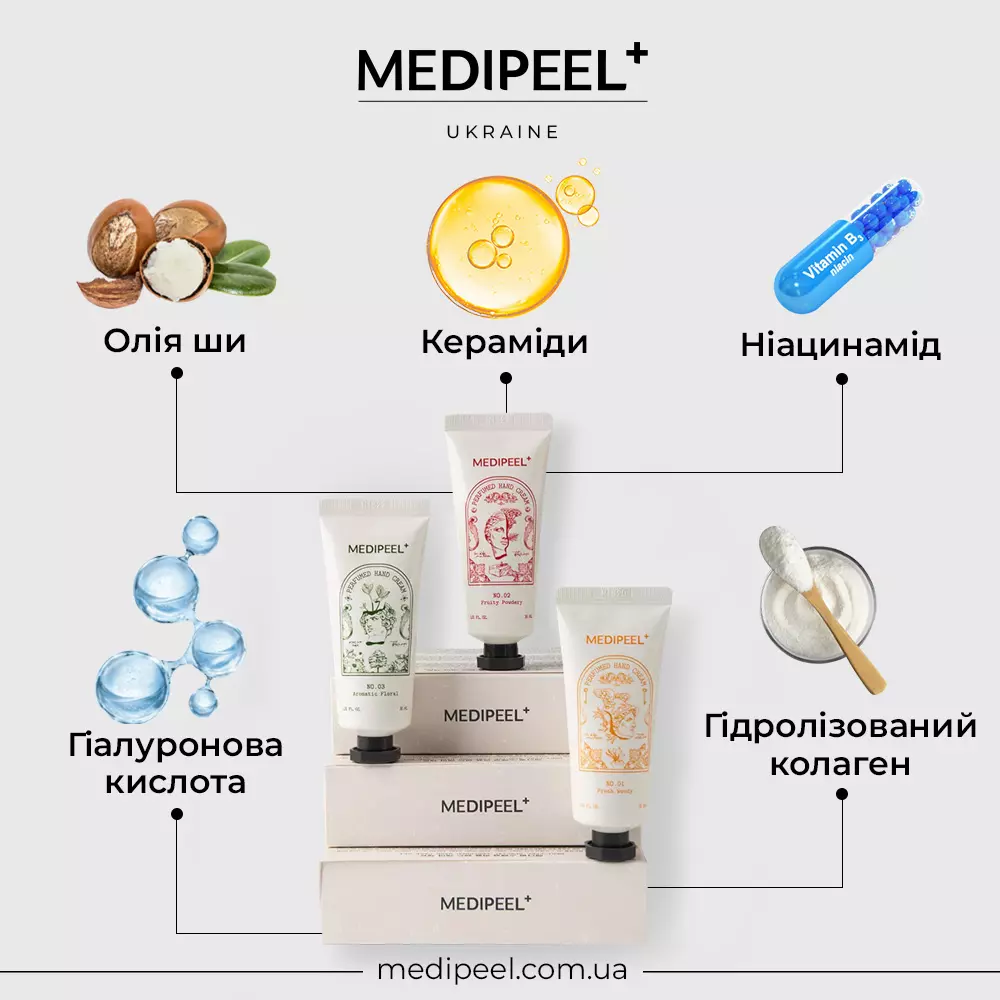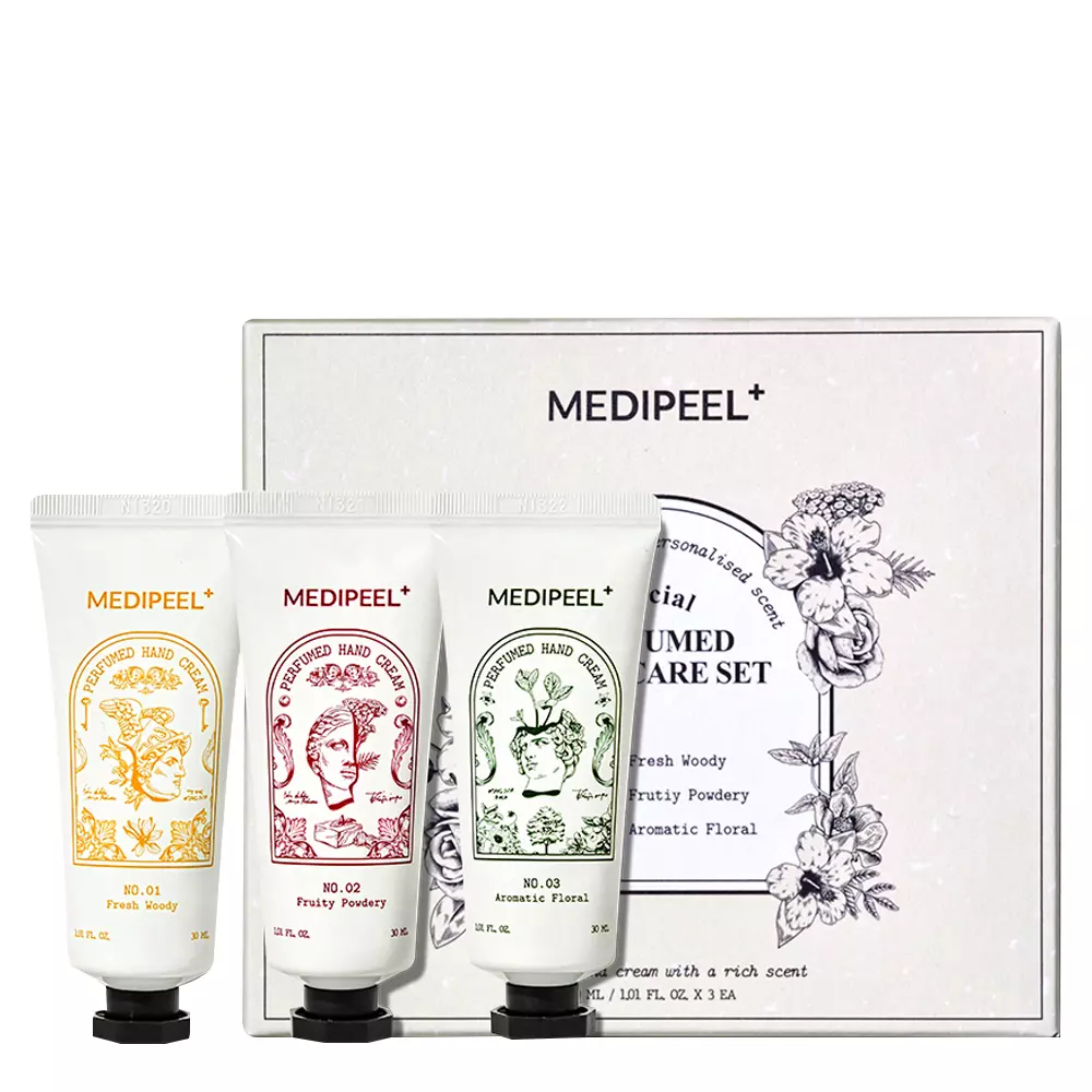 Відкрийте ідеальний догляд за руками з парфумованим набором кремів MEDIPEEL, який включає три унікальних аромати та потужні зволожувальні компоненти. Кожен крем не лише зволожує і живить, але й наповнює шкіру ніжним та стійким ароматом, створюючи атмосферу релаксації та догляду.