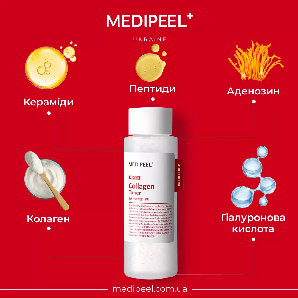 Опис MEDIPEEL Red Lacto Collagen Soothing Essence Toner