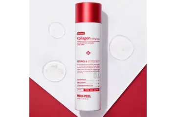 MediPeel Retinol Collagen Lifting Toner - это лифтинг-тоник для лица, который обеспечивает интенсивный уход за кожей и возвращает ей молодость. Он содержит ключевые ингредиенты - ретинол и коллаген, которые улучшают структуру кожи и делают ее более упругой и сияющей.