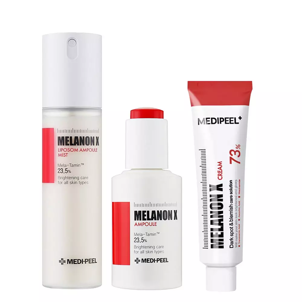 Представляем вашему вниманию MEDIPEEL Melanon X Set – инновационное решение в области косметологии, созданное для борьбы с гиперпигментацией и улучшения тонуса кожи. В состав этого набора входят три продукта: Liposome Ampoule Mist, Melanon X Ampoule и Melanon X Cream, которые в совокупности предоставляют мощную комбинацию ингредиентов, нацеленных на уменьшение пигментных пятен и восстановление равномерного, сияющего тона кожи. Разработанный с использованием передовых технологий, MEDIPEEL Melanon X Set предлагает профессиональный уход за кожей на уровне салона красоты прямо у вас дома