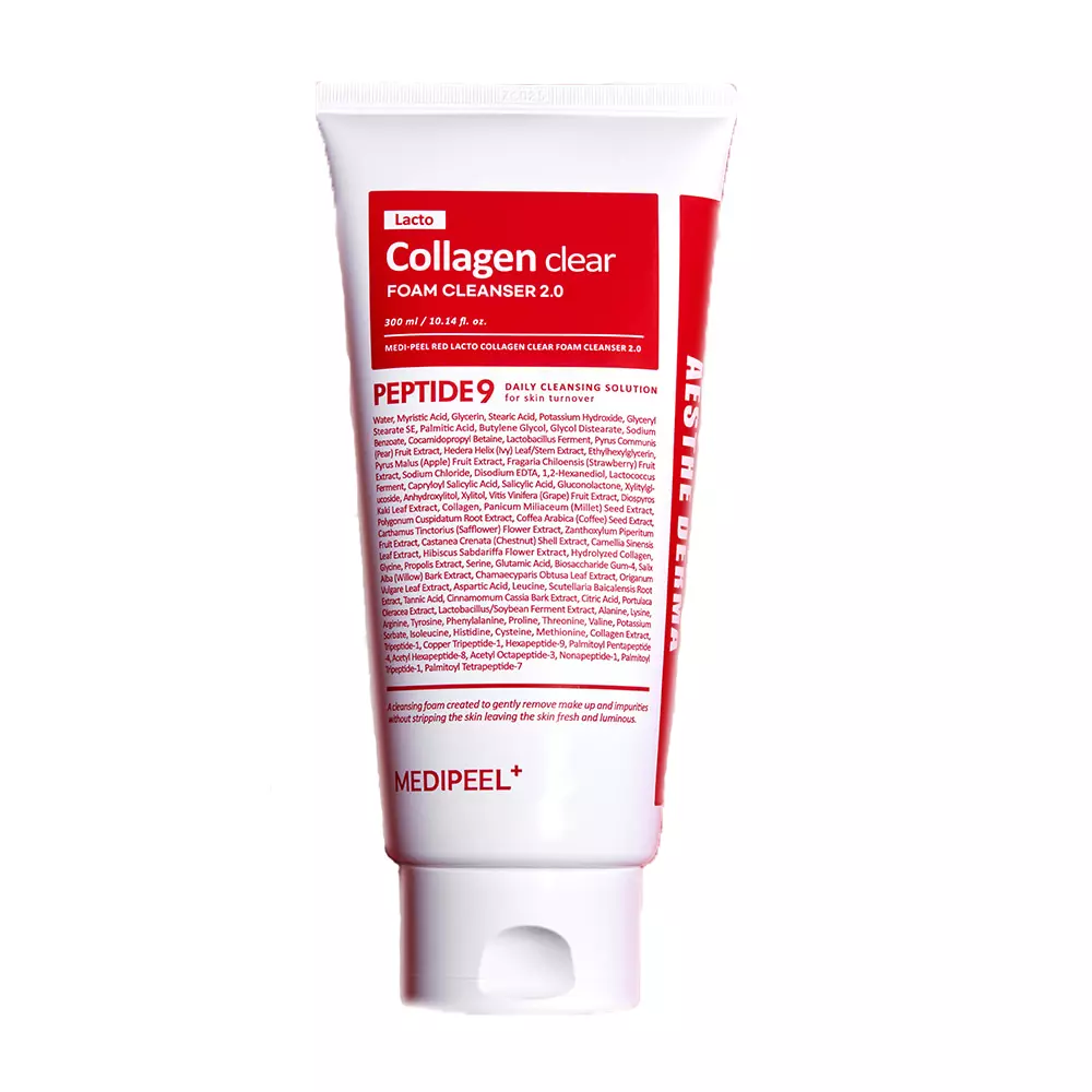Используйте MEDIPEEL Red Lacto Collagen Clear Foam Cleanser 2.0 для достижения чистой, гладкой и эластичной кожи.