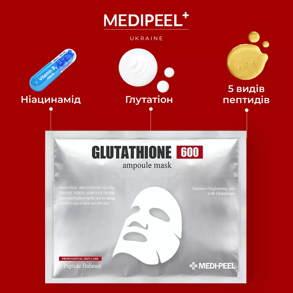 Тканевая маска для лица с глутатионом MEDIPEEL Bio-Intense Glutathione White Ampoule Mask, 1 шт