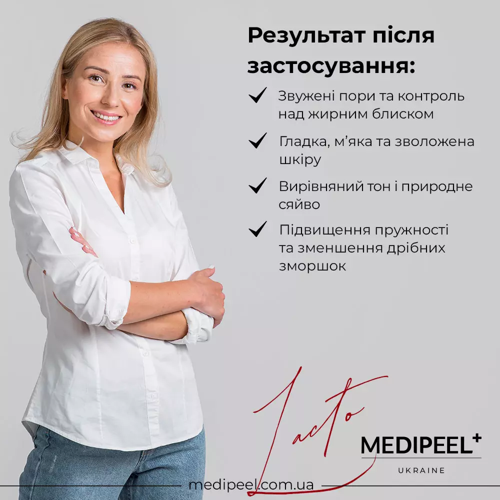 При регулярном использовании пилинг-пэдов MEDIPEEL Lacto Pore Lifting Pad 2x вы получите: