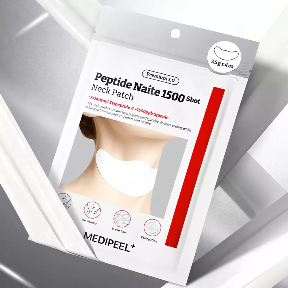 MEDIPEEL Premium Peptide Naite 1500 Shot Neck Patch — это интенсивный антивозрастной пластырь для ухода за кожей шеи и зоны декольте, направленный на борьбу с морщинами, снижением упругости и сухостью кожи.