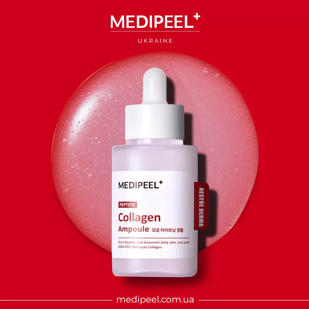 - Medi-Peel Red Lacto Peptide Collagen Tightening Ampoule - сыворотка для улучшения эластичности кожи, уменьшения пор и совершенствования текстуры кожи.