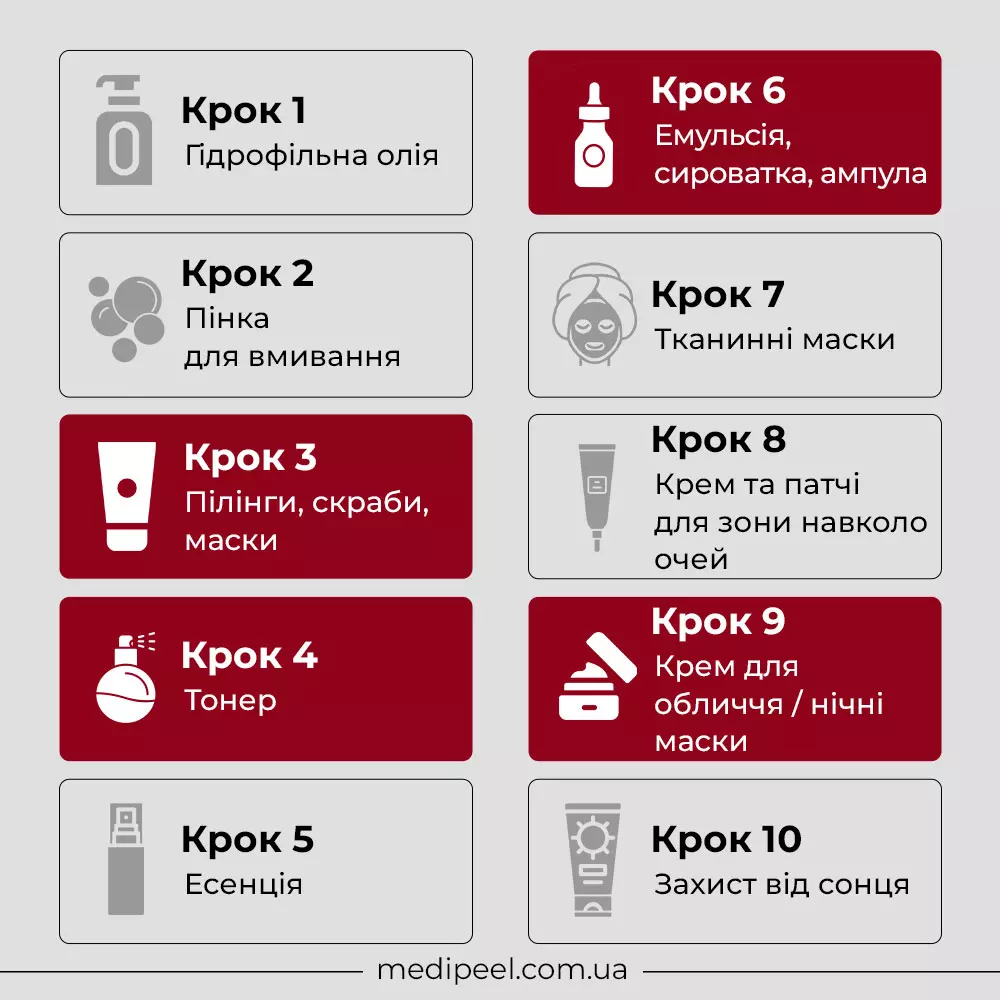 ☝️ Продукция Medi Peel проходит ряд лабораторных исследований, чтобы подтвердить, что она является безопасной и эффективной для девушек. Но от индивидуальной непереносимости определенных ингредиентов в формуле продуктов никто не застрахован. Чтобы обезопасить себя и сделать опыт использования косметики положительным, и главное - не навредить своему здоровью, всегда проводите такой тест перед добавлением любого косметического средства в ежедневные ритуалы красоты.