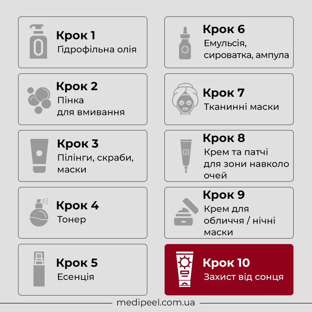 ☝️ Продукция Medi Peel проходит ряд лабораторных исследований, чтобы подтвердить, что она является безопасной и эффективной для девушек. Но от индивидуальной непереносимости определенных ингредиентов в формуле продуктов никто не застрахован. Чтобы обезопасить себя и сделать опыт использования косметики положительным, и главное - не навредить своему здоровью, всегда проводите такой тест перед добавлением любого косметического средства в ежедневные ритуалы красоты.
