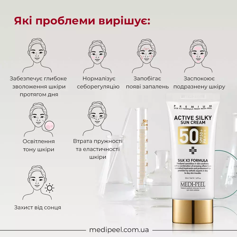 Оживите свою кожу и обеспечьте ей превосходную солнечную защиту с помощью MEDI-PEEL Active Silky Sun Cream SPF50+PA - настоящего заботливого помощника в борьбе с солнцем!