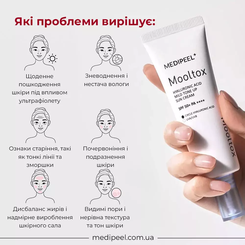 Тонизирующий солнцезащитный крем для лица MEDIPEEL Mooltox Hyaluronic Acid Mild Tone Up Sun Cream, 50 г