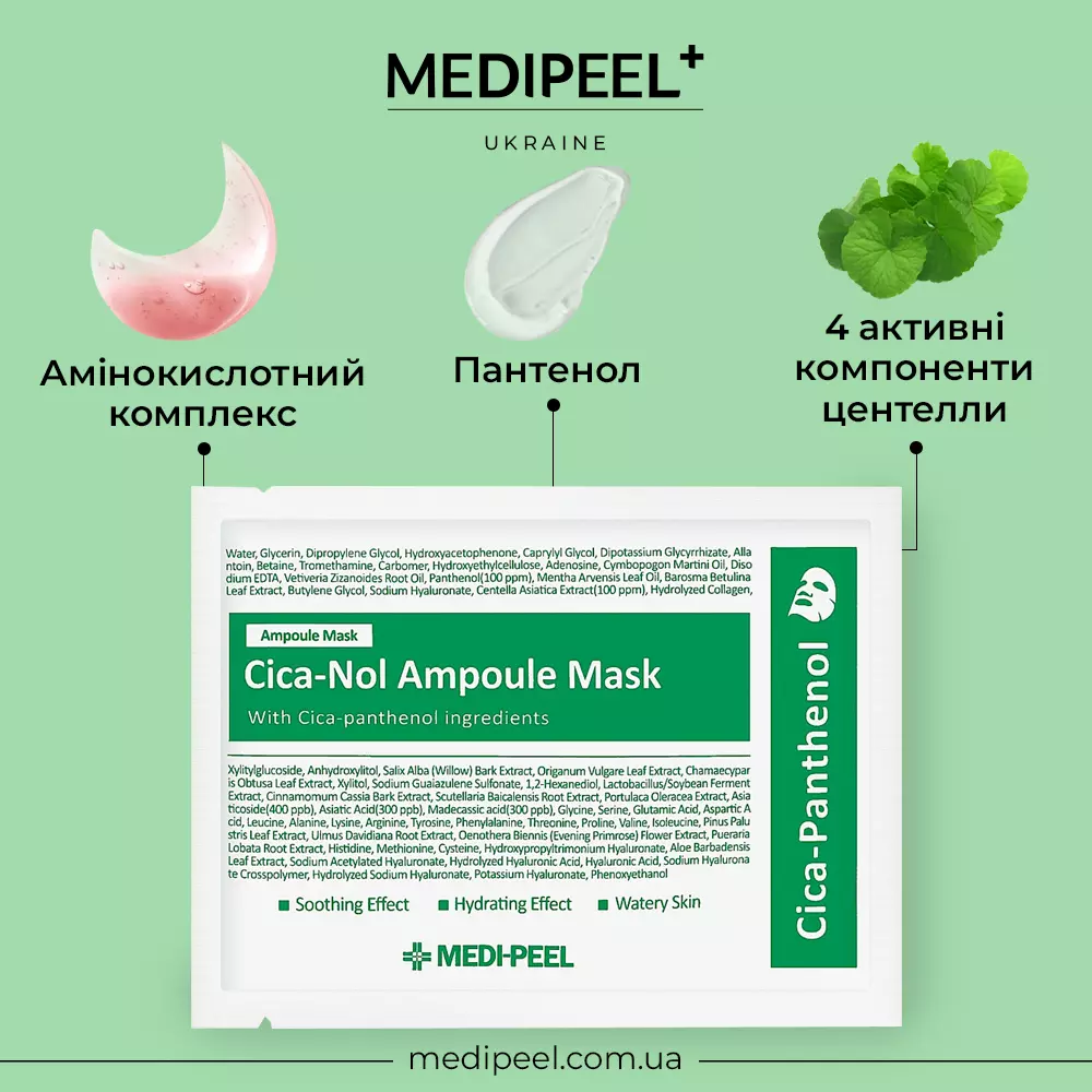 Тканевая маска для лица с центеллой MEDIPEEL Cica-Nol Ampoule Mask, 1 шт