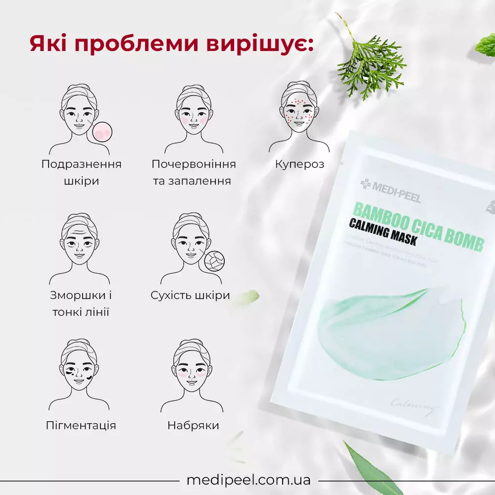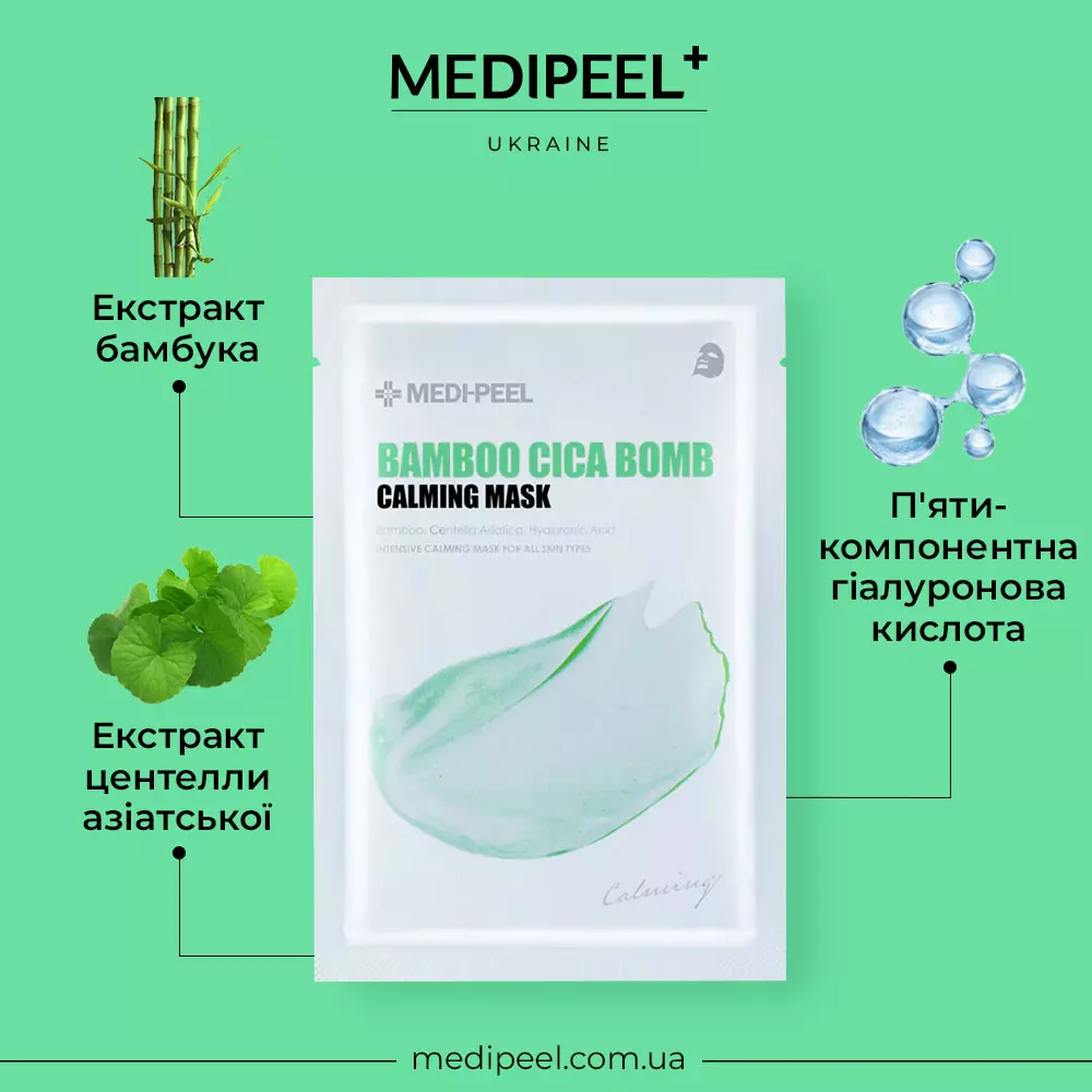 Успокаивающая тканевая маска для раздраженной, проблемной кожи лица MEDIPEEL Bamboo Cica Bomb Calming Mask, 1 шт