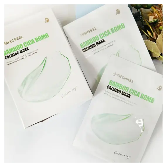 Ознакомиться с нашим обзором про успокаивающую тканевую маску с центеллой и бамбуком Medi-Peel Bamboo Cica Bomb Calming Mask можно перейдя по ссылке