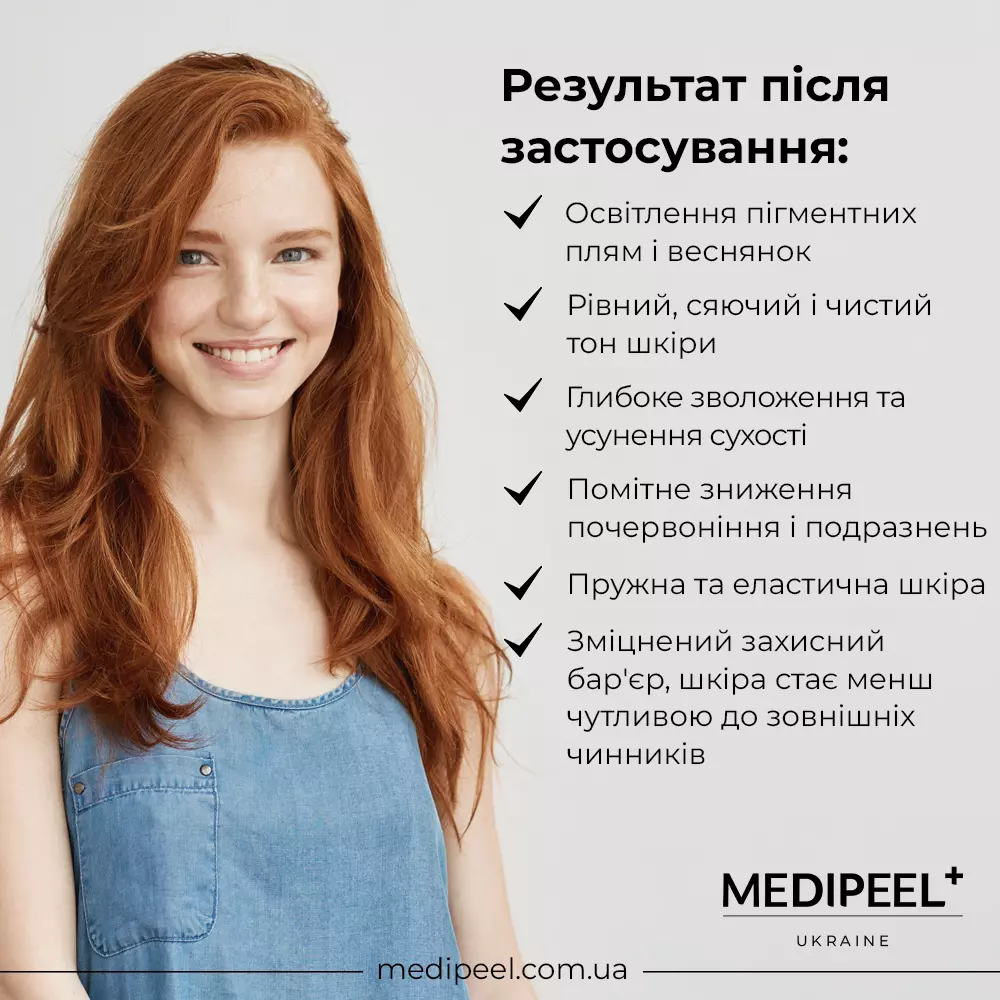 ☝️ Продукция Medi Peel проходит ряд лабораторных исследований, чтобы подтвердить, что она является безопасной и эффективной для девушек. Но от индивидуальной непереносимости определенных ингредиентов в формуле продуктов никто не застрахован. Чтобы обезопасить себя и сделать опыт использования косметики положительным, и главное - не навредить своему здоровью, всегда проводите такой тест перед добавлением любого косметического средства в ежедневные ритуалы красоты.